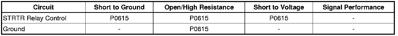 The ECM detects that the control circuit of the STRTR relay is open, shorted to ground, or shorted to voltage for 2 seconds.