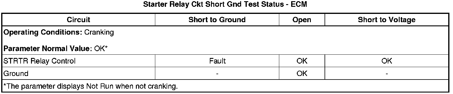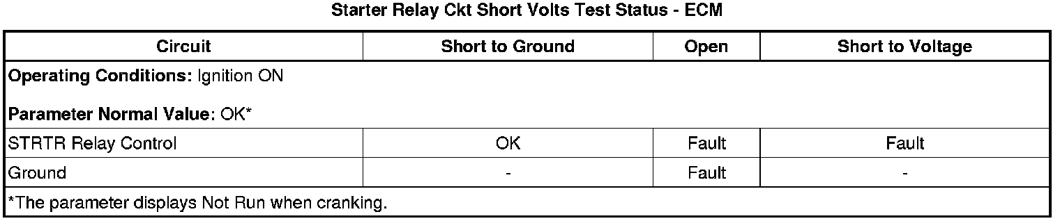 * Starter Relay Ckt Short Volts Test Status