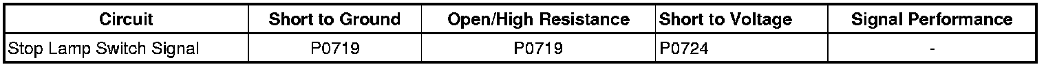 DTC P0724 sets if the TCM detects a closed brake switch or circuit, 12 volts, for 15 minutes during vehicle acceleration and the following conditions occur eight times: