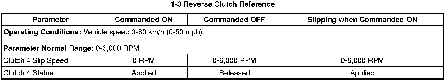 The TCM detects the 1-3 reverse clutch slip is greater than 100 RPM for greater than 300 milliseconds.