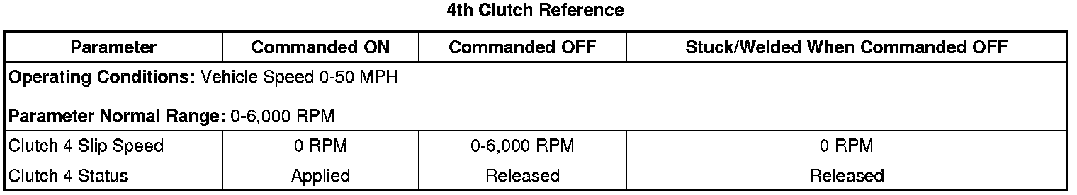 The 4th clutch is commanded OFF for 3 seconds and the HPCM detects the clutch 4 slip speed is less than 80 RPM for 3 seconds, when commanded OFF.