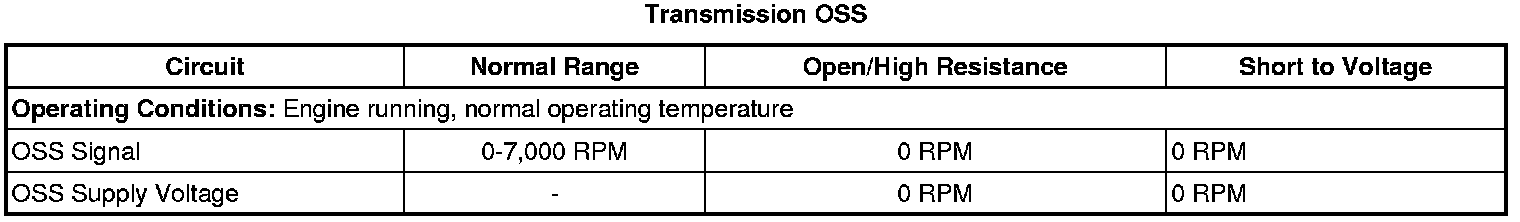 6. Ignition ON, observe the scan tool Transmission OSS parameter. The scan tool Transmission OSS parameter should be between 100-400 RPM.