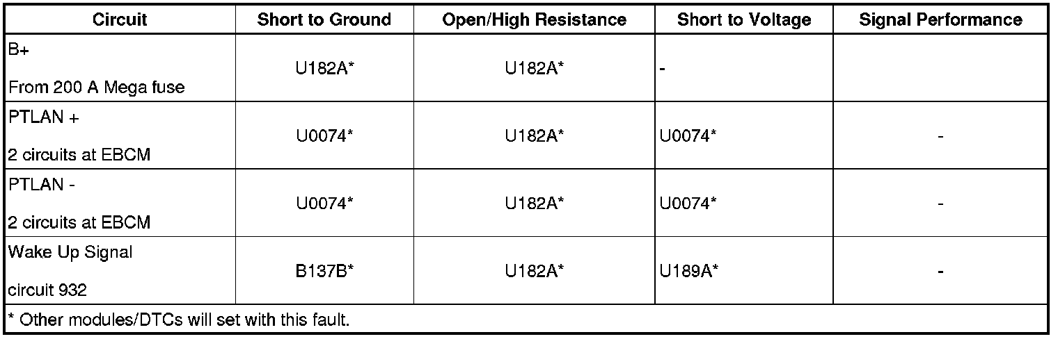 Different DTCs may set in different modules along with this DTC depending on where the fault occurs and the vehicle operating conditions when the fault occurs.