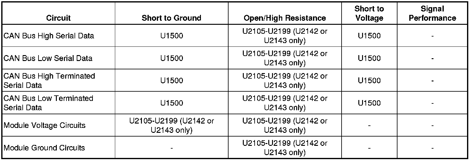 * Do not replace a control module reporting a U-code. The U-code identifies which control module needs to be diagnosed for a communication issue.