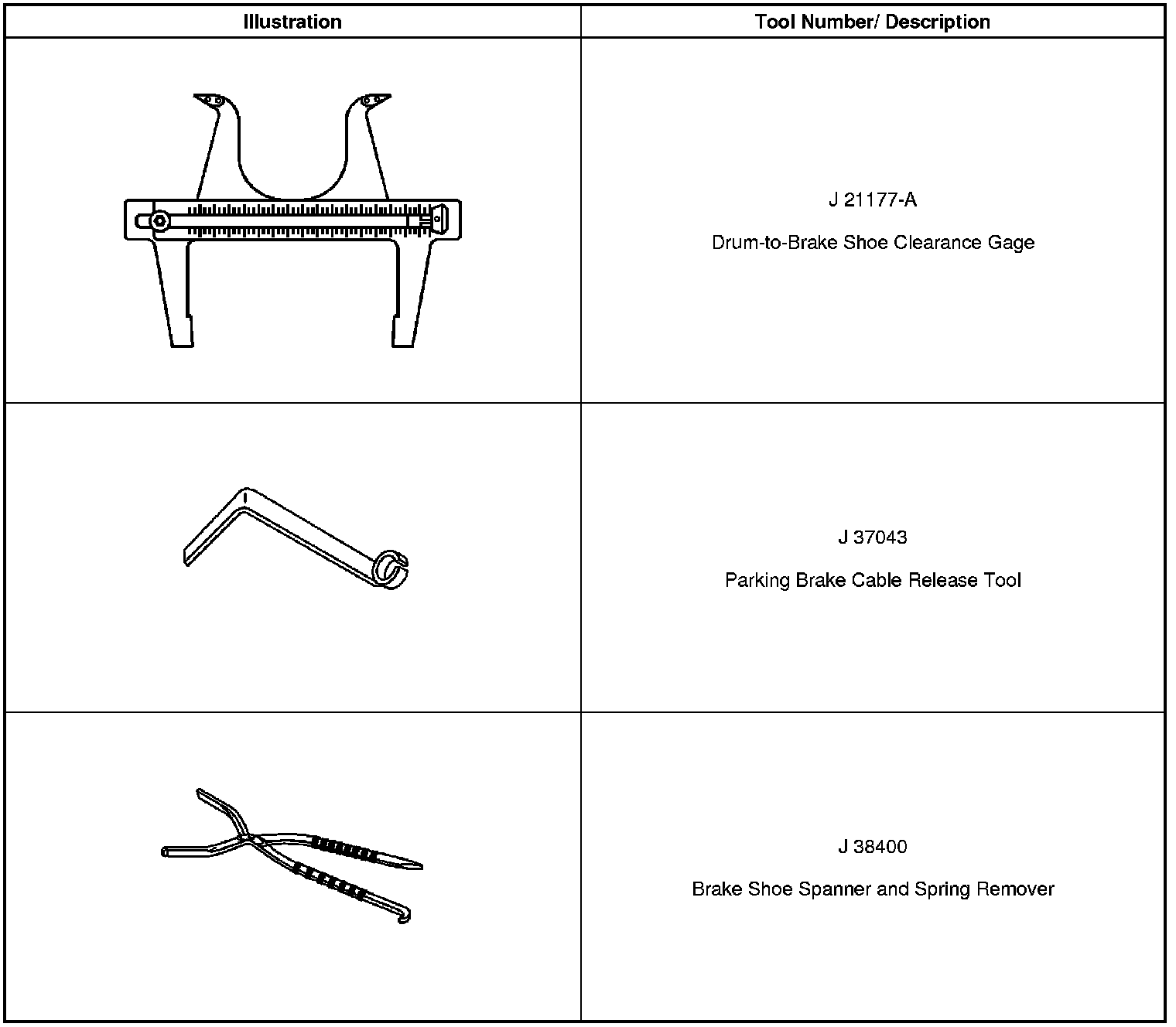 Parking Brake System: Tools and Equipment