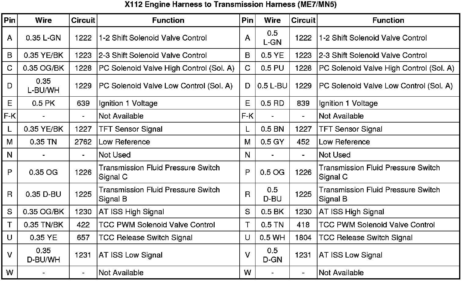 X112 Engine Harness to Transmission Harness (ME7/MN5)