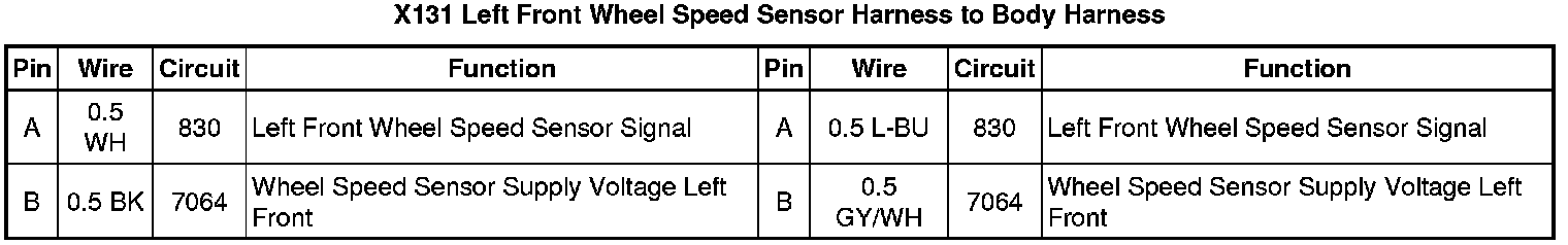 X131 Left Front Wheel Speed Sensor Harness to Body Harness