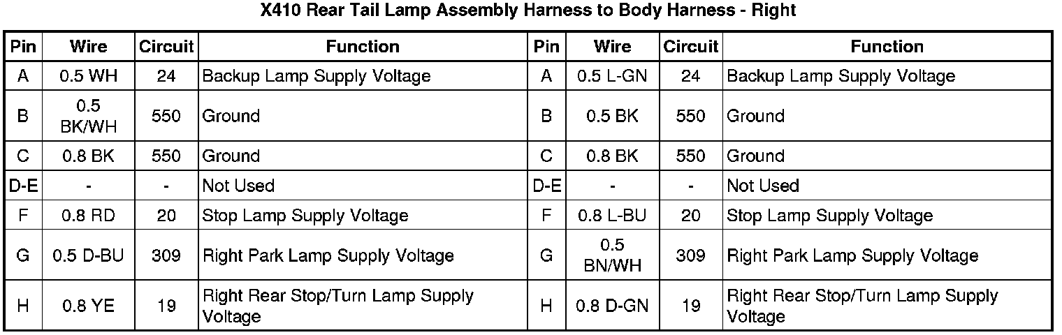 X410 Rear Tail Lamp Assembly Harness to Body Harness - Right