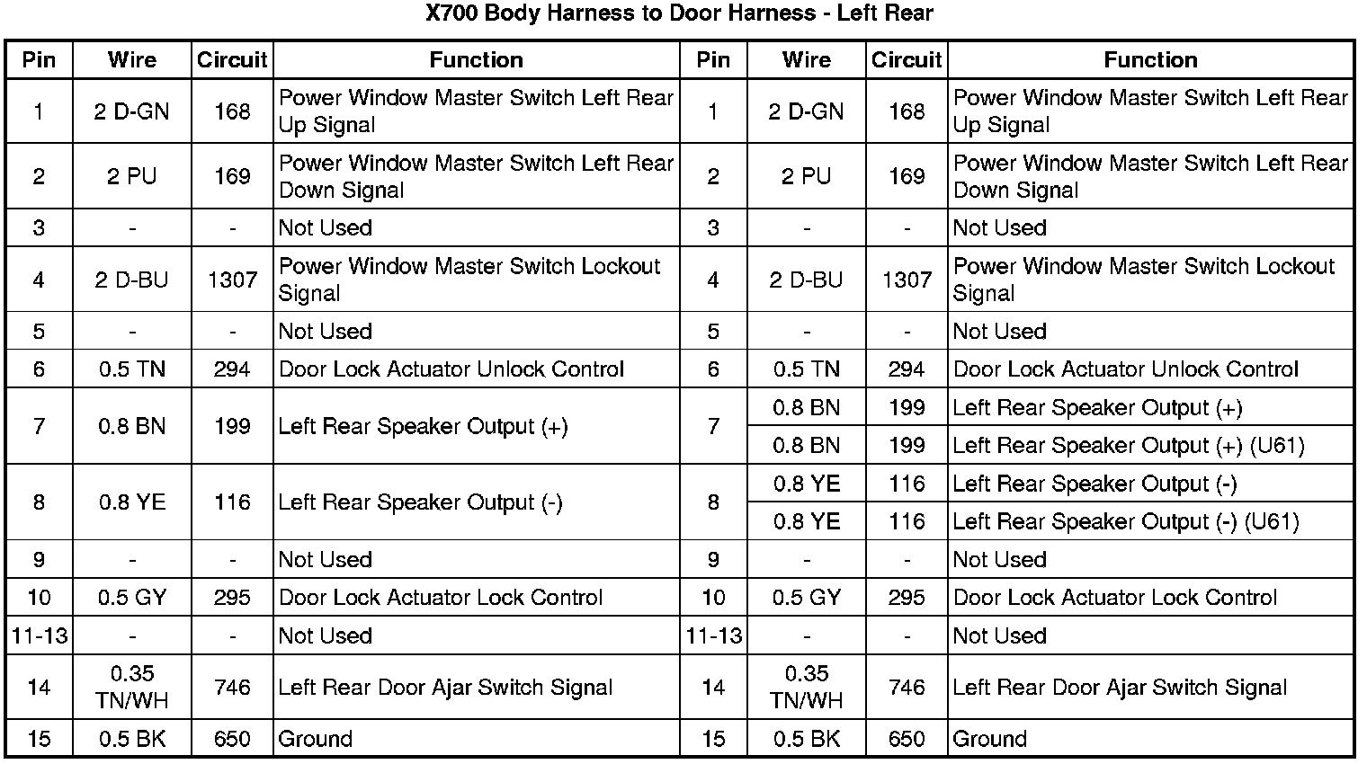 X700 Body Harness to Door Harness - Left Rear