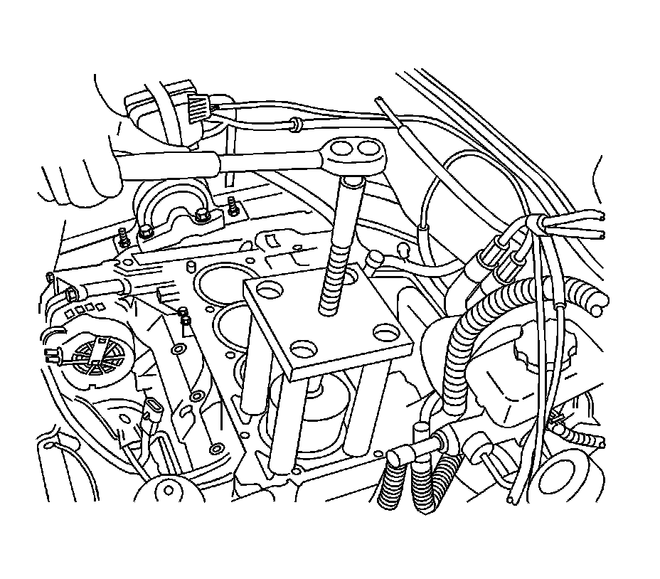 17. Remove the EN 45680-881 trim tool assembly from the engine block.