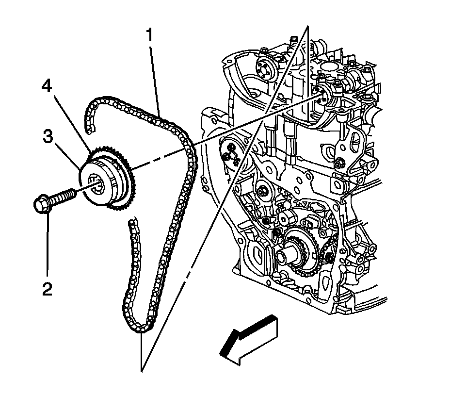 Note: Ensure that the alignment mark made previously on the intake camshaft actuator is still aligned properly with the mark on the timing chain. If the mark made previously on the intake camshaft actuator is not aligned properly, refer to Camshaft Timing Chain, Sprocket, and Tensioner Replacement (Service and Repair).