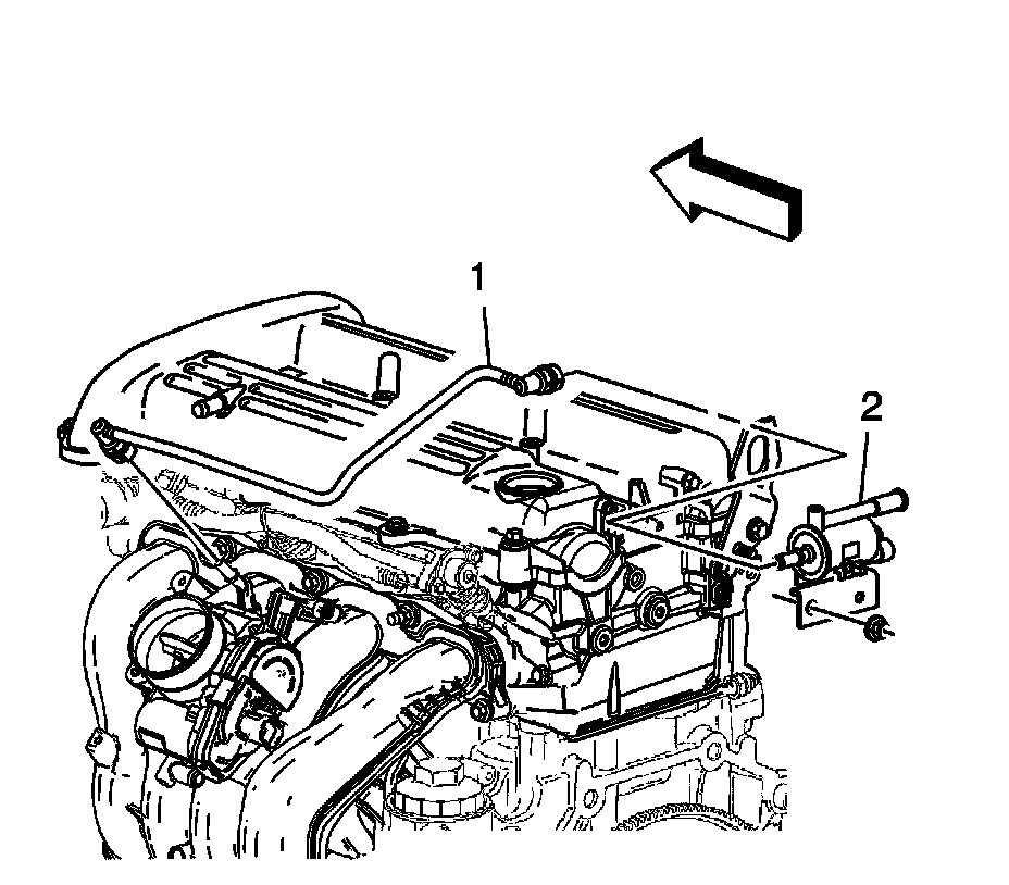 14. Install the EVAP canister valve (2) and tighten to 25 Nm (18 lb ft).