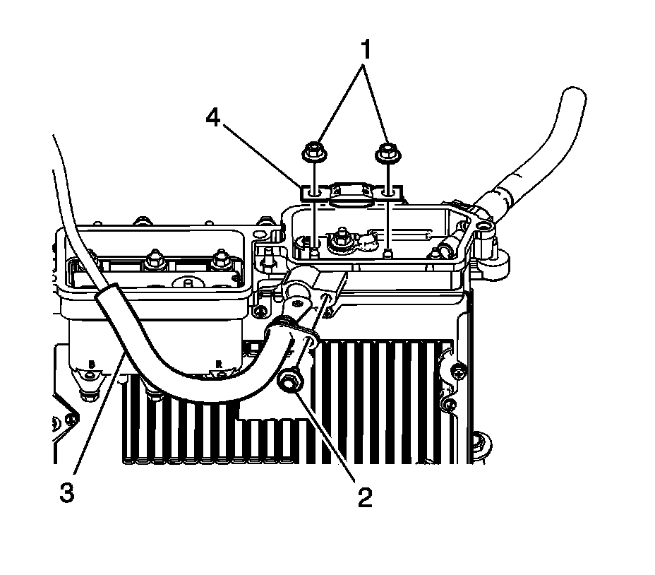 4. Install the ECM bracket (3), bolts (1) and nuts (2) and tighten the nuts to 10 Nm (89 lb in).