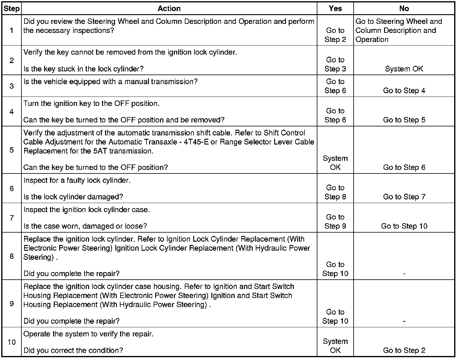 Ignition Key Cannot Be Removed from the Ignition Lock Cylinder