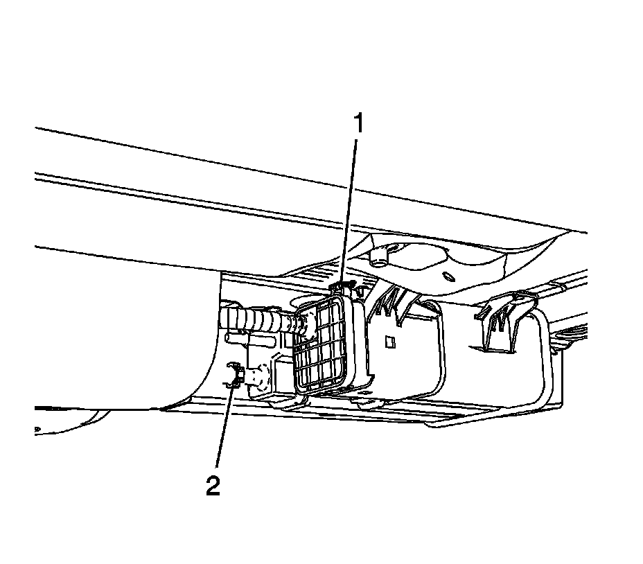 4. Disconnect the chassis EVAP line quick connect fitting (1) from the EVAP canister. Refer to Plastic Collar Quick Connect Fitting Service (Plastic Collar Quick Connect Fitting Service).