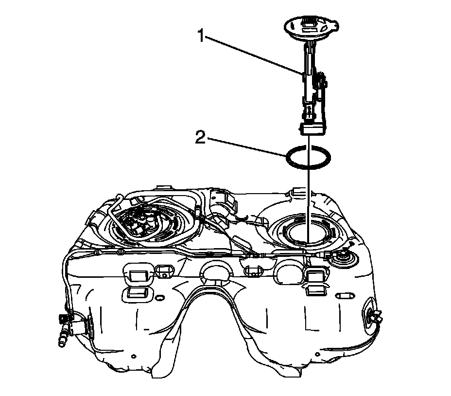 2. Install a NEW fuel tank module O-ring seal (2) onto the fuel tank.