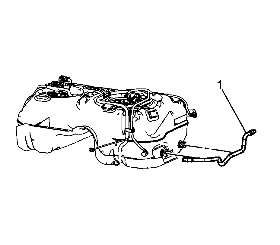 2. Disconnect the fuel feed line quick connect fitting (1) from the fuel tank fuel pump module. Refer to Plastic Collar Quick Connect Fitting Service (Plastic Collar Quick Connect Fitting Service).