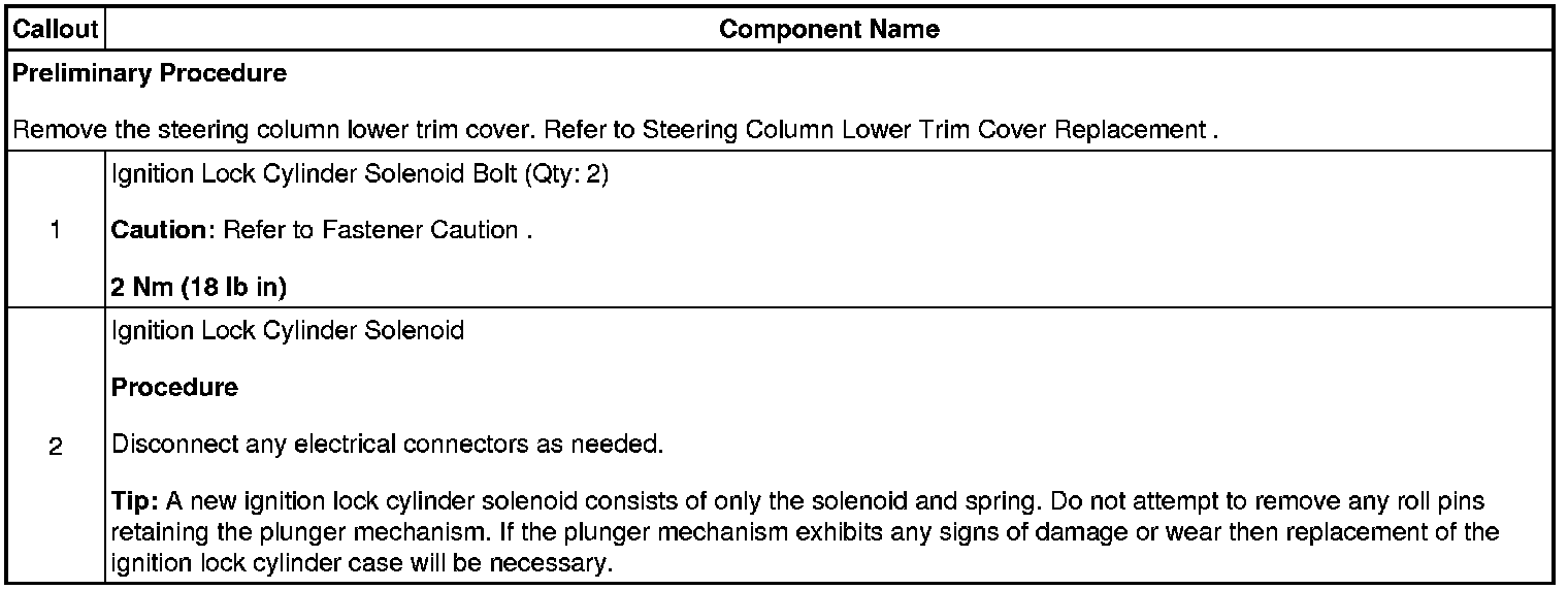 Ignition Lock Cylinder Control Solenoid Replacement (Without NVH)