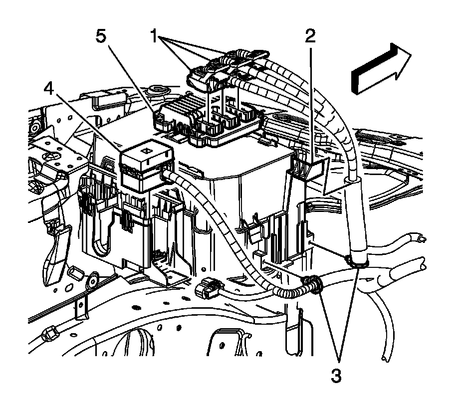 4. Disconnect the engine wiring harness electrical connectors (1) from the ECM (5).