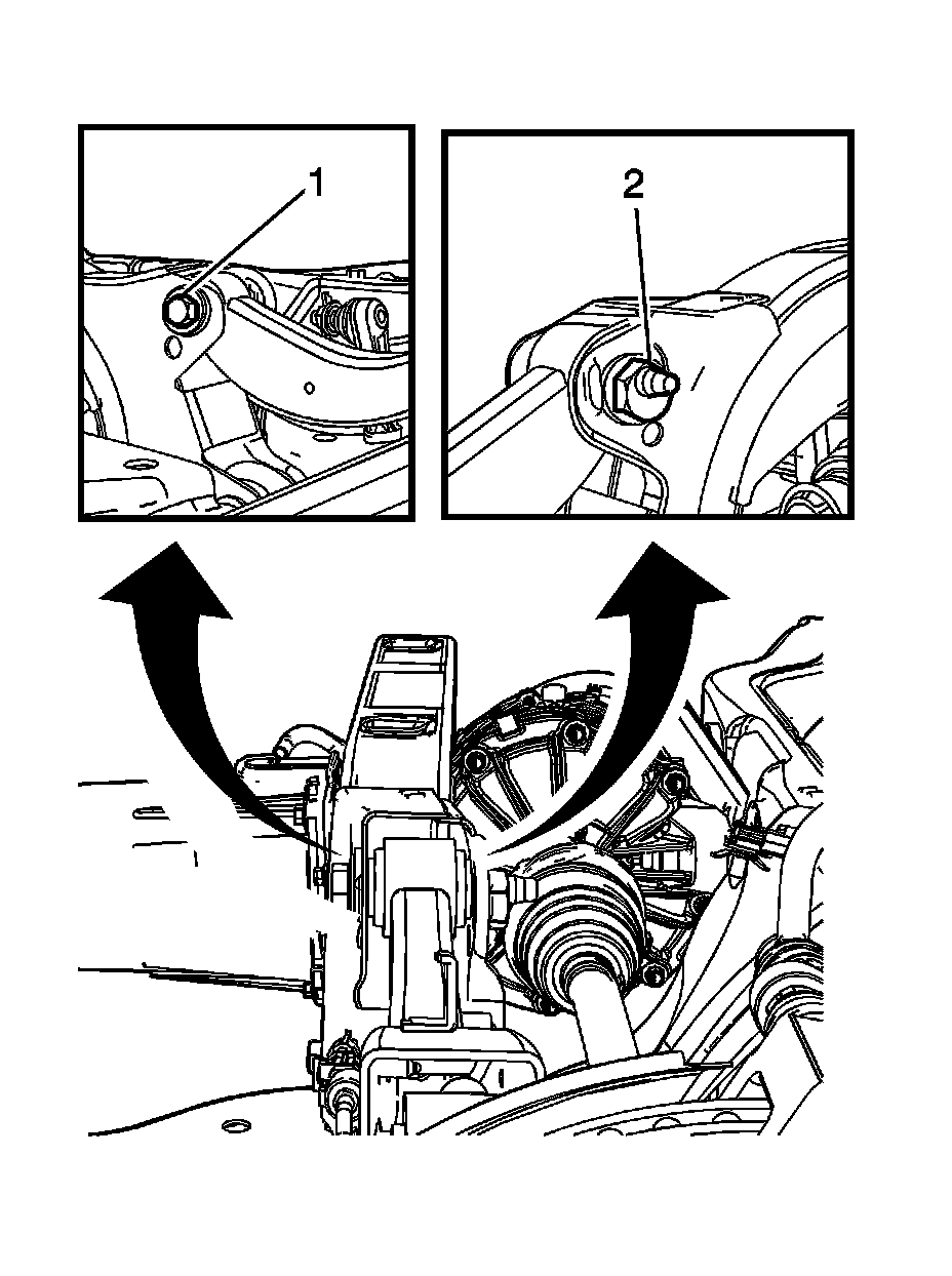 3. Snug the upper control arm nut (2), do not tighten at this time.