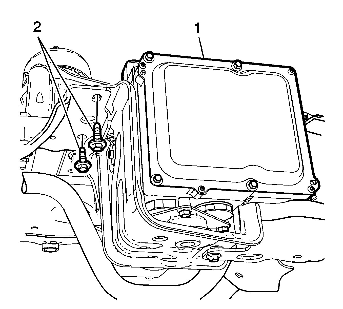 19.Remove the four bolts that attach the electric brake control module (EBCM) (1) to the frame.
