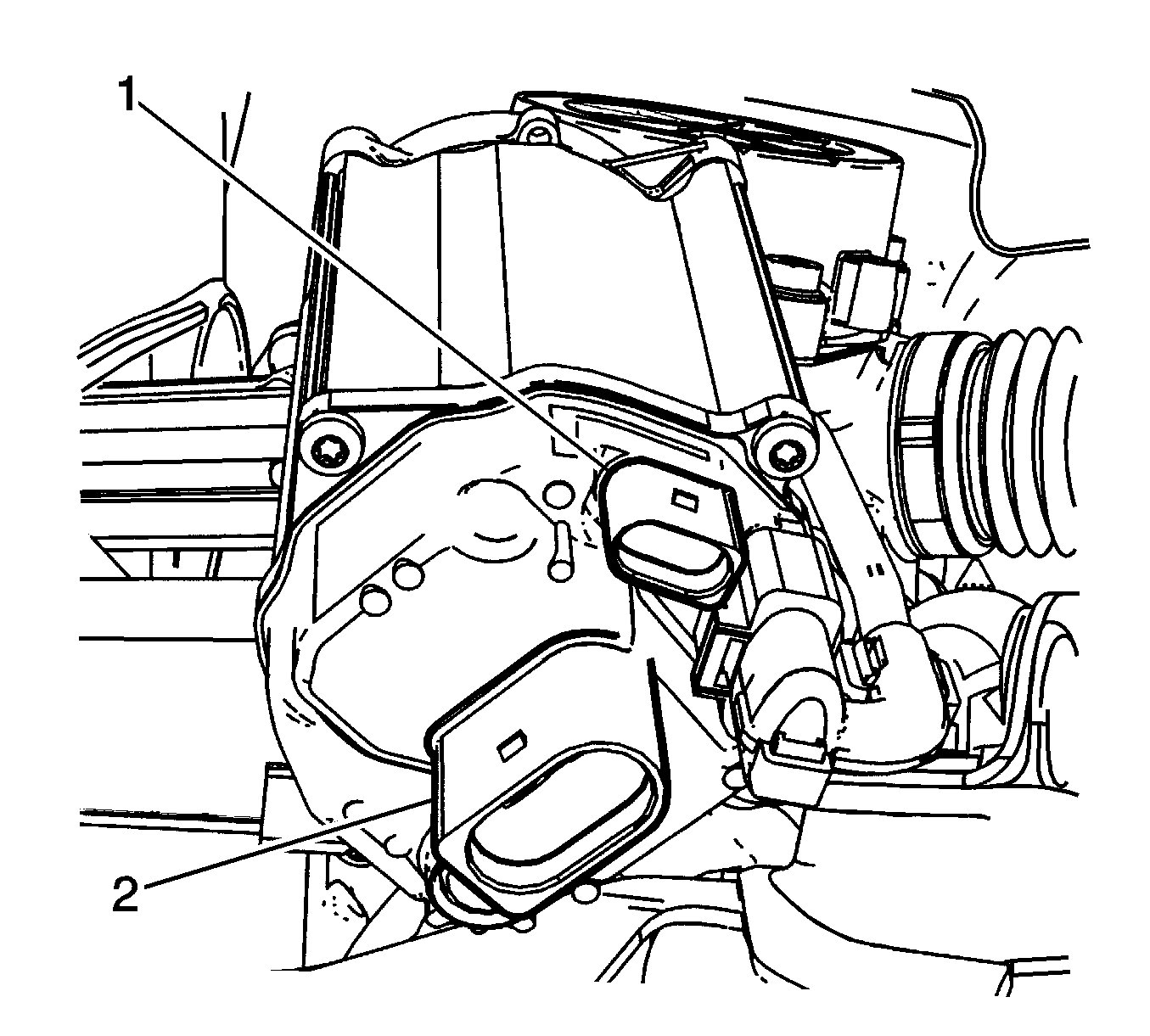 9.Connect the two electric power steering rack electrical connectors (1, 2).
