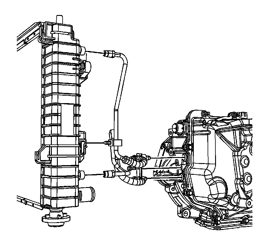 Caution: Allow sufficient clearance around the transaxle oil cooler pipes and around the hoses to prevent damage or wear which may cause fluid loss.
