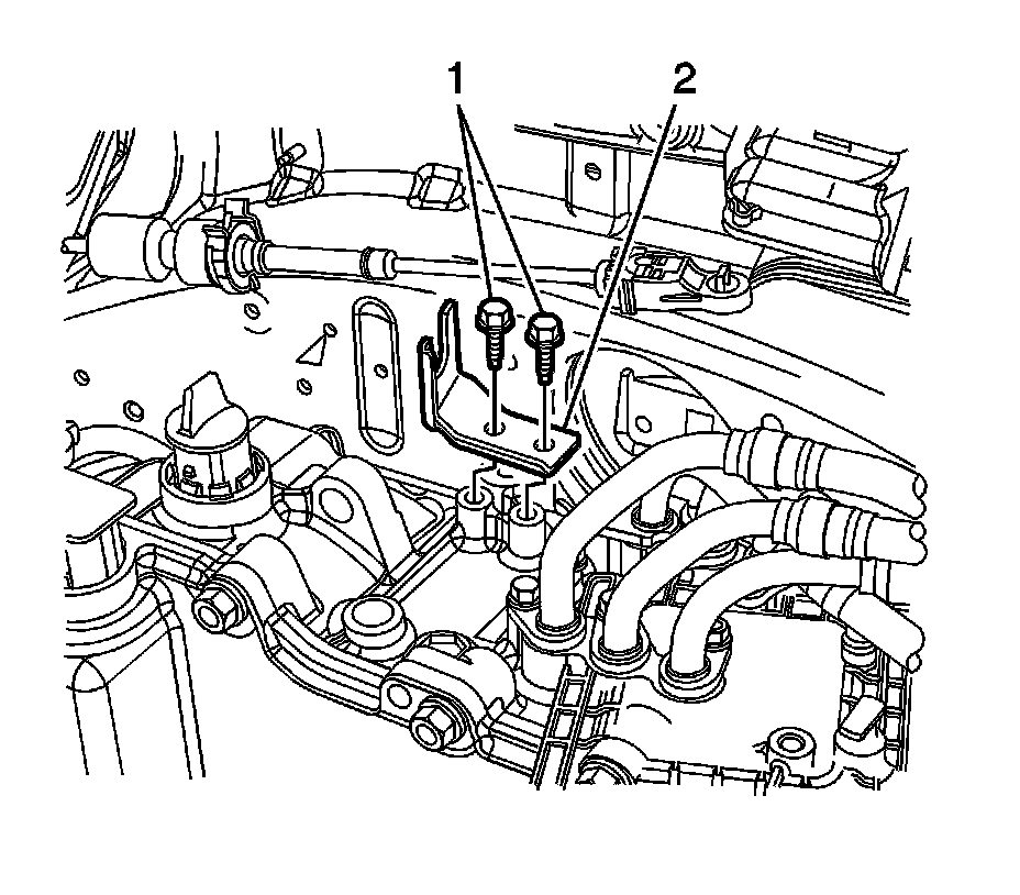 2. Install the bolts (1) securing the range select lever cable bracket, then tighten the bolts to 25 Nm (18 lb ft).