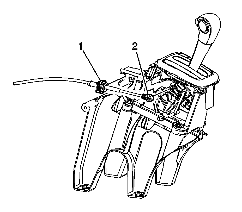 4. Install the range select cable (2) to the automatic transmission range select lever pin.