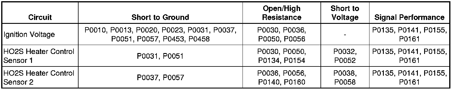 The ECM detects a short to ground in the heater circuits of the HO2S when the heater is commanded OFF. The condition exists for greater than 5 seconds.