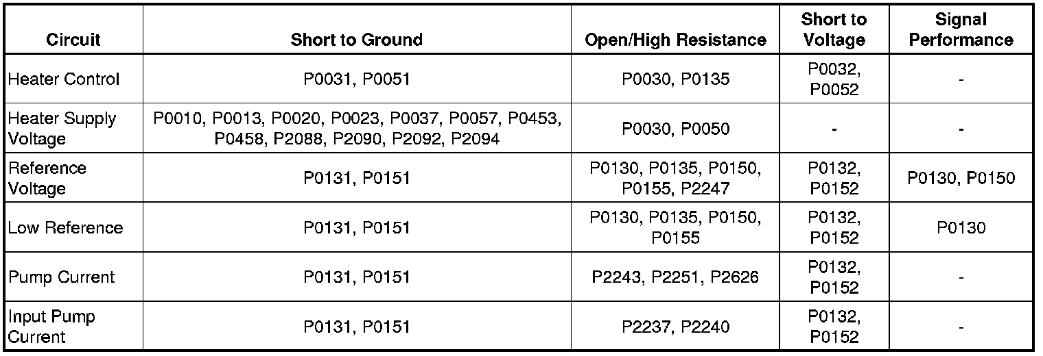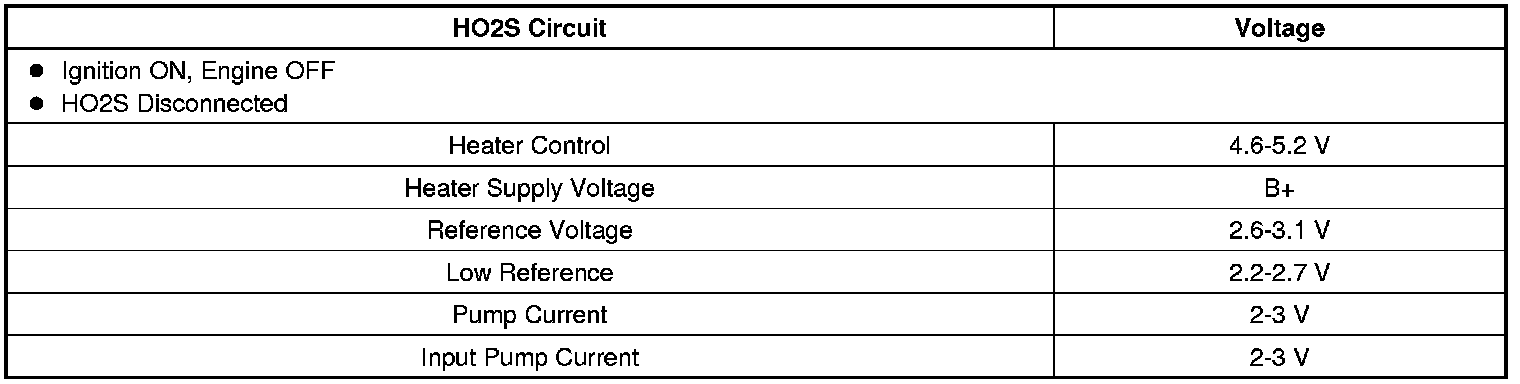 * The following table illustrates the typical voltages for the HO2S circuits: