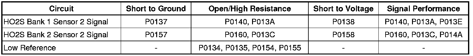 * The ECM detects that a HO2S 2 signal voltage is less than 60 mV for greater than 5 seconds.