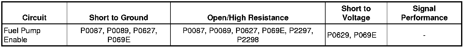 - Fuel Pump Enable Circuit Low Voltage