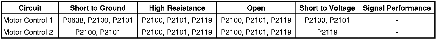 * DTCs P0638, P2100, P2101, and P2119 are Type A DTCs.