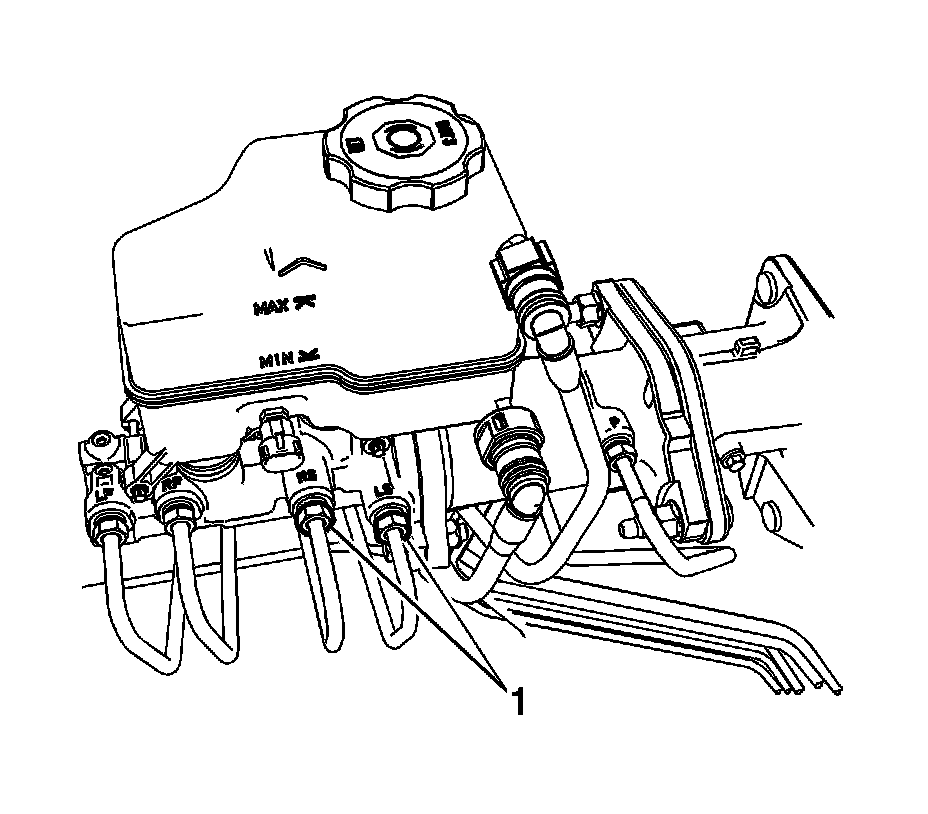 Note: The system is active and pressurized, therefore the brake fluid level in the master cylinder reservoir cannot be allowed to be higher than the MAX mark of the operating range.