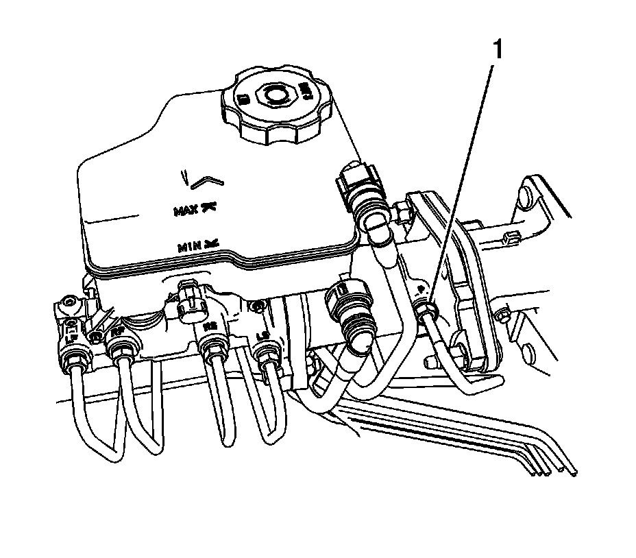 44. If the primary brake pipe port (1) was not fully bled within the 60 second cycle time, press Start to repeat Steps 42-43.