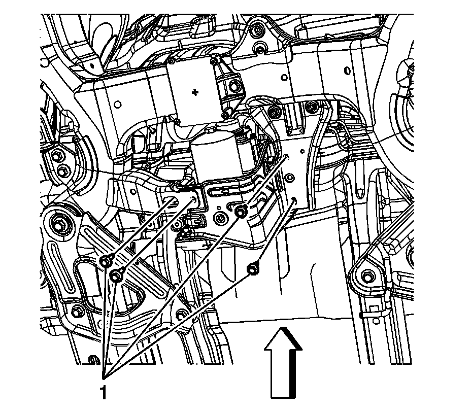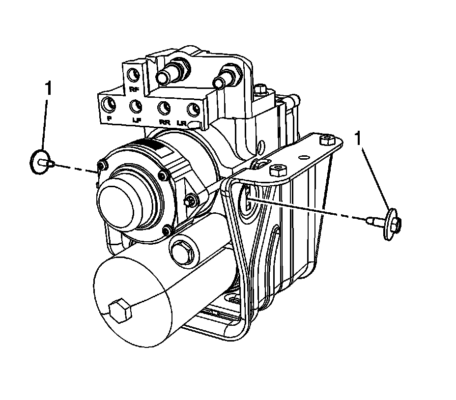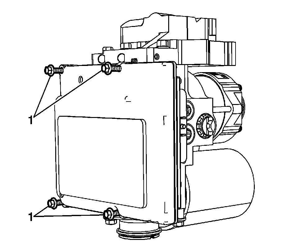 2. Install the EBCM bolts (1) and tighten in an X pattern to 3 Nm (27 lb in).
