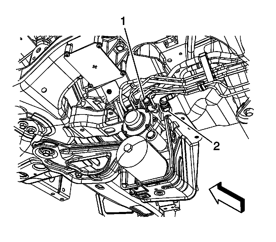 10. Connect the left front brake pipe fitting (2) and tighten to 18 Nm (13 lb ft).