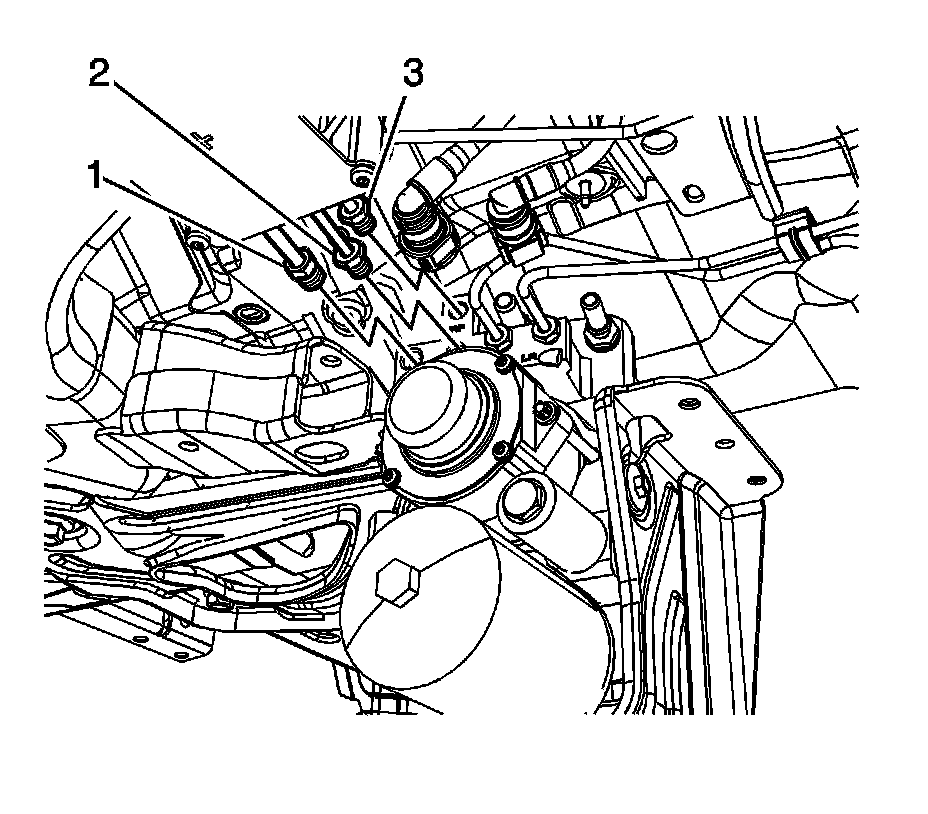 11. Connect the right front brake pipe fitting (3) and tighten to 18 Nm (13 lb ft).