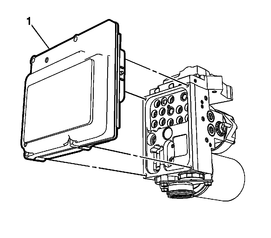 23. Using the loosened bolts as a guide, carefully pull the EBCM (1) evenly from the BPMV to release the electrical connectors.