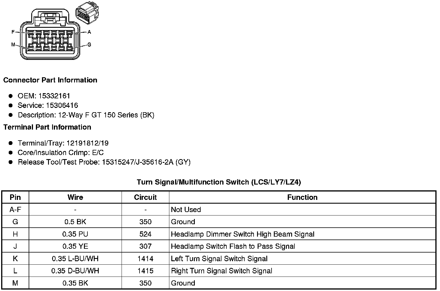 Turn Signal/Multifunction Switch (LCS/LY7/LZ4)