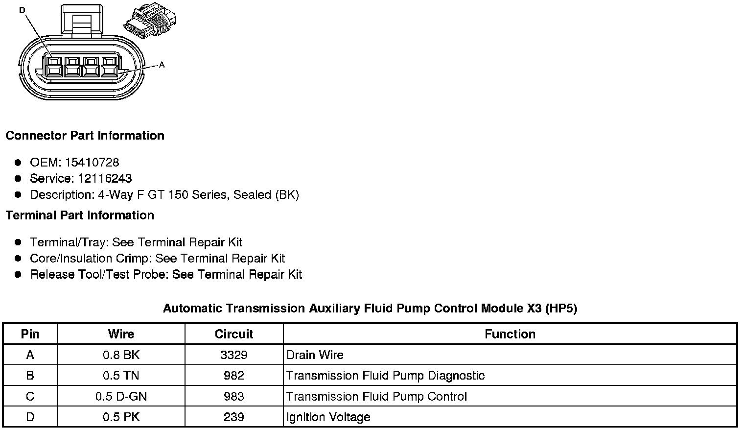 Automatic Transmission Auxiliary Fluid Pump Control Module X1 (HP5)