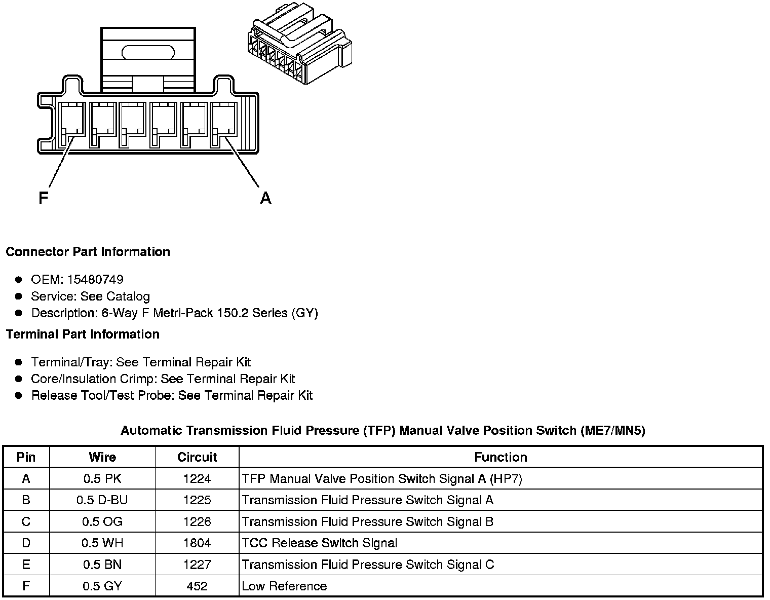 Automatic Transmission Fluid Pressure (TFP) Manual Valve Position Switch (ME7/MN5)