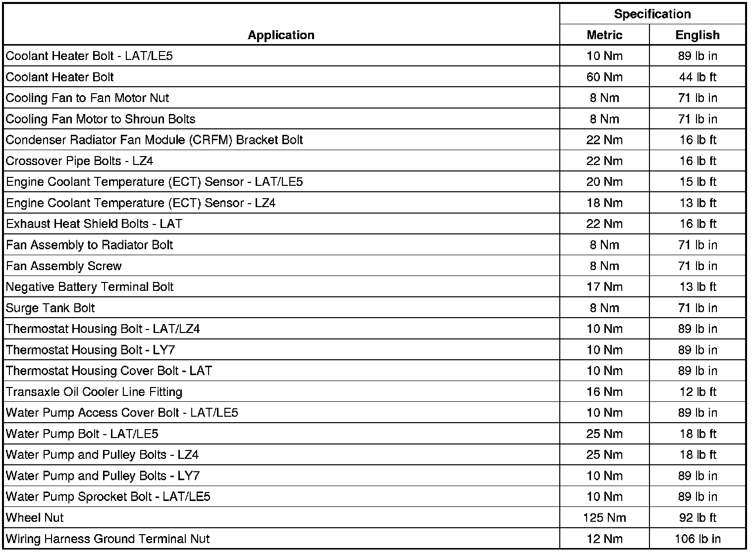 Fastener Tightening Specifications