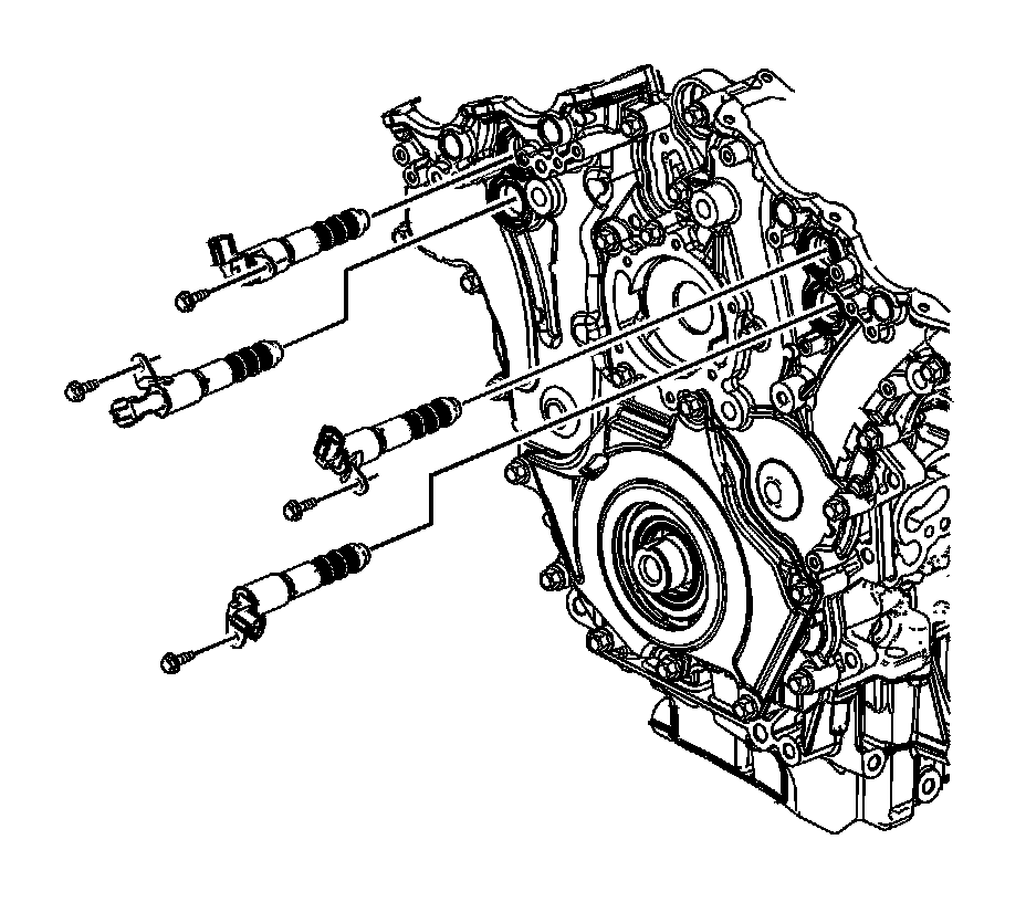 13. Install the camshaft position actuator valve bolts and tighten to 10 Nm (89 lb in).