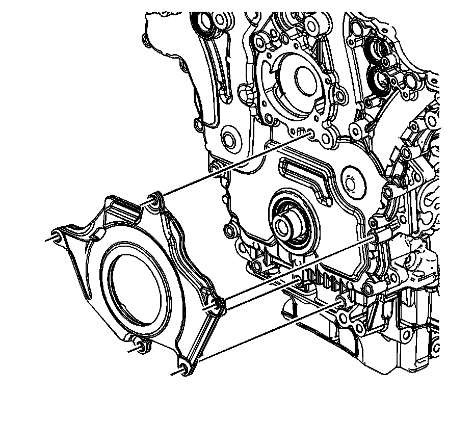 4. Place the engine front cover onto the EN-46109 - pins and slide into position.