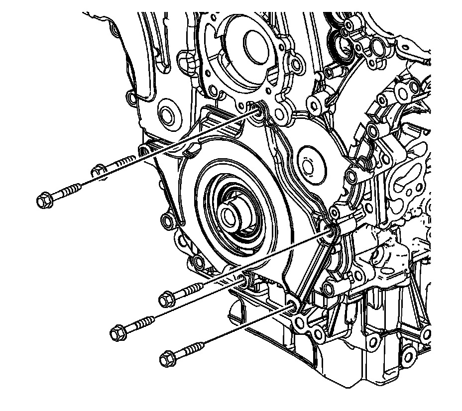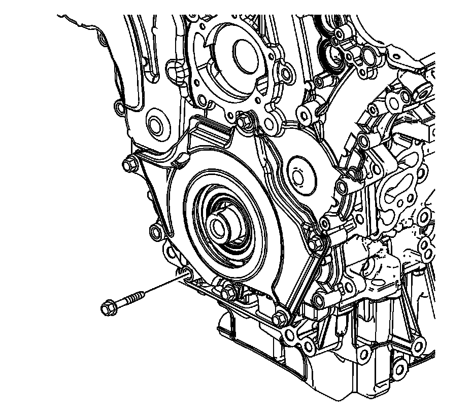 7. Loosely install the engine front cover bolts to hold the engine front cover deadener into position.