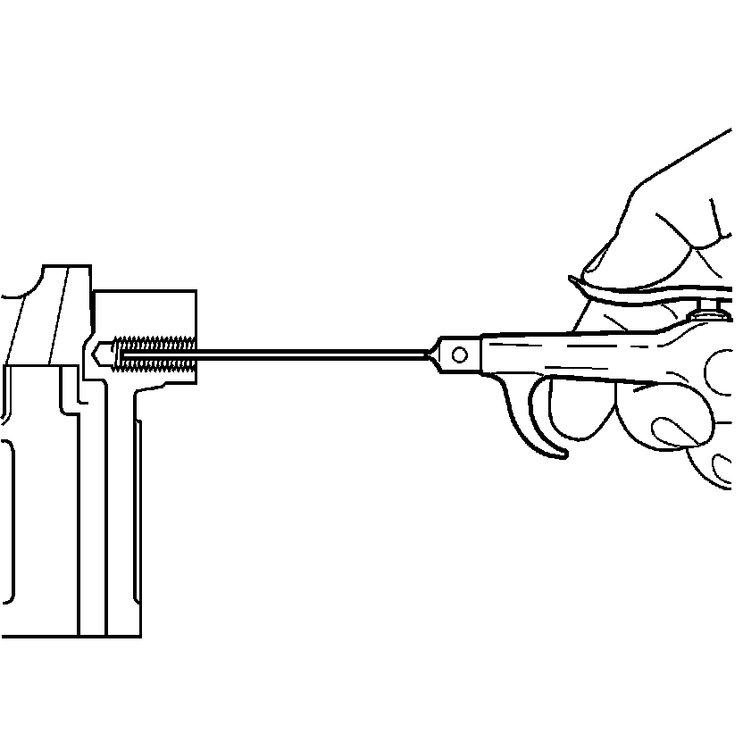 11. Spray cleaner GM P/N 12346139, GM P/N 12377981 (Canadian P/N 10953463) or equivalent into the tapped hole.