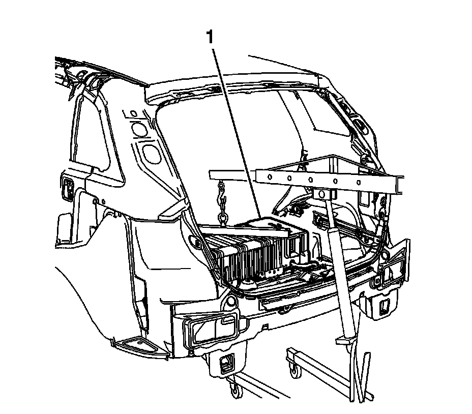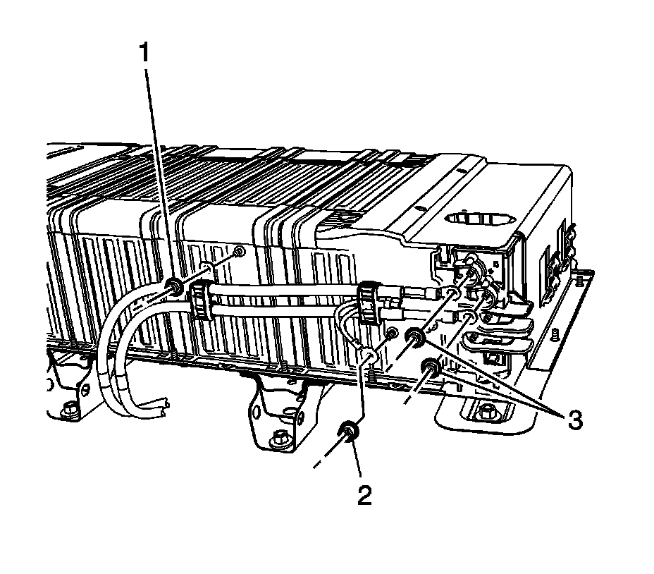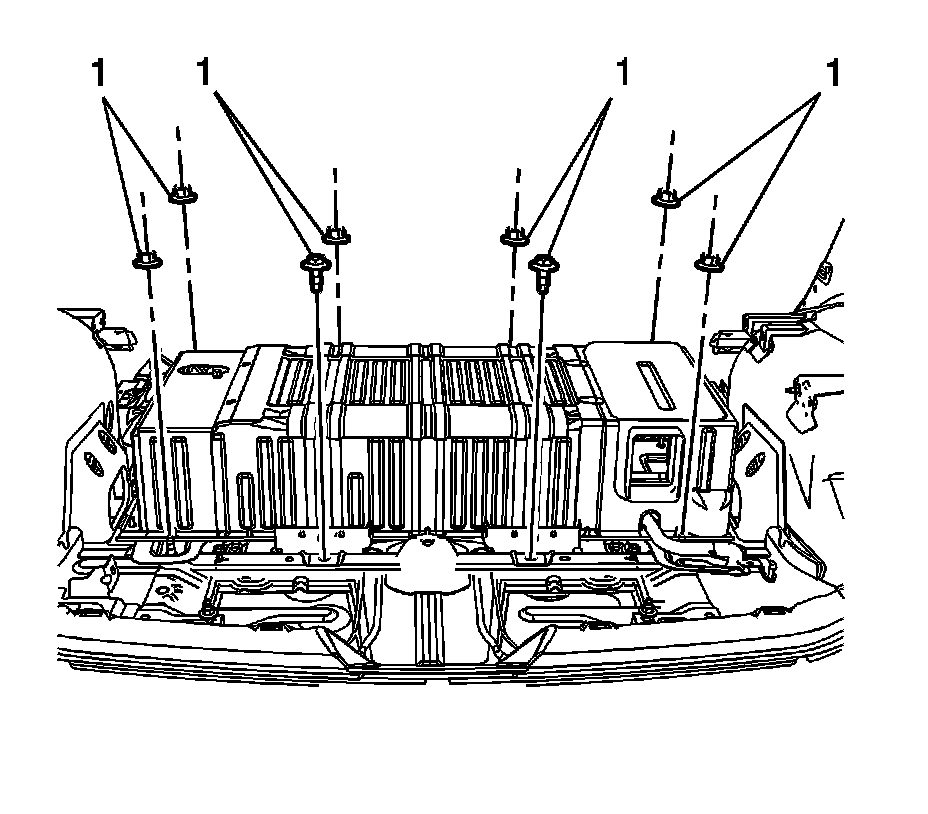 2. Install the drive motor generator battery fasteners (1) and tighten to 58 Nm (43 lb ft).