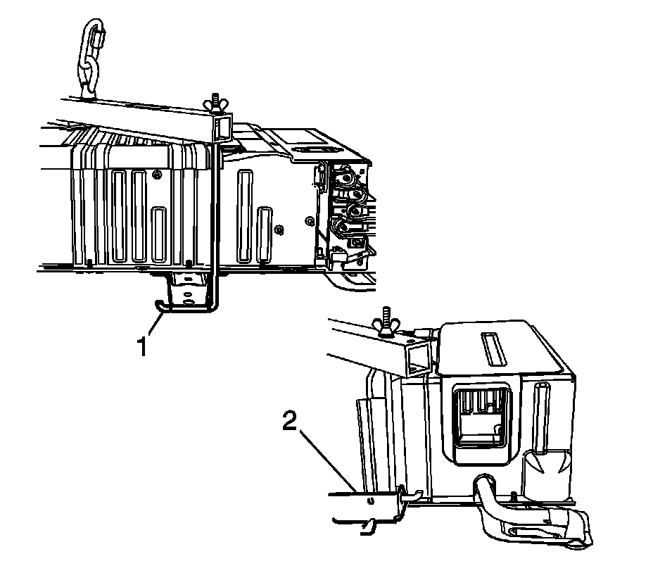 11. Install the tool at lifting points (1) and (2).